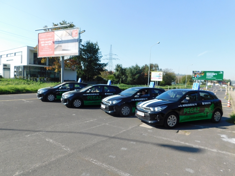 6. Szkolenie praktyczne prowadzone jest na 4 pojazdach szkoleniowych w wersji takiej jak na egzaminie Państwowym (KIA RIO IV). Jazdy odbywają się nie tylko po Winogradach. Każdy ma okazję wyjechać poza miasto, oraz zapoznać się z dużą liczbą skrzyżowań w Poznaniu tak, aby odnaleźć się w każdej sytuacji a nie tylko nauczyć się na pamięć kilkunastu skrzyżowań w okolicy WORD. Do państwa dyspozycji jest również pełnowymiarowy plac manewrowy z 4 stanowiskami do nauki.
