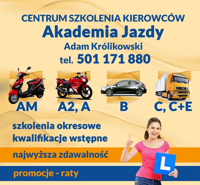uzyskają zniżkę na kategorie : A2, A oraz C i CE.