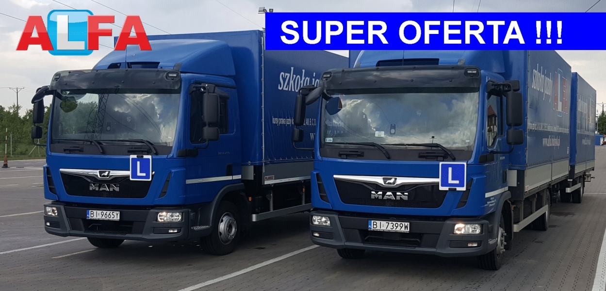 30 godzin (po 60 min) jazd ( MAN TGL 12.250, MAN TGM 12.240, VOLVO FM 330)
