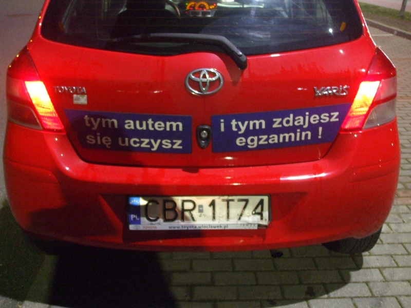 -nauka samochodem (toyota yaris II), którym zdajesz egzamin państwowy.