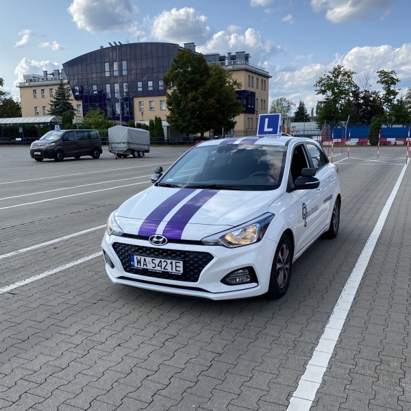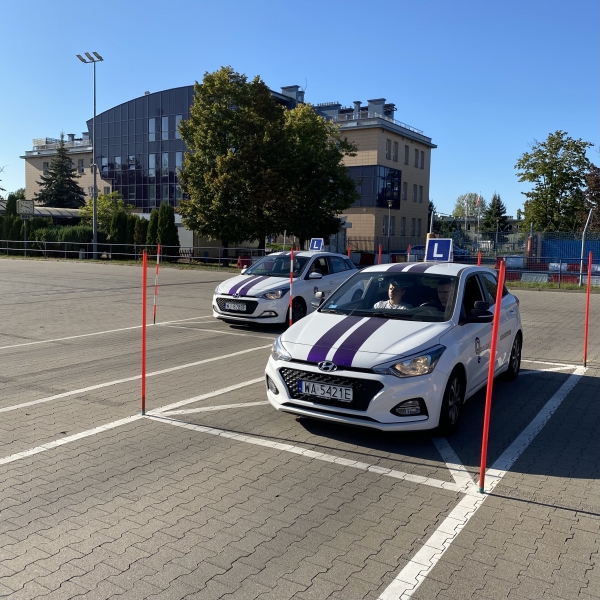- własny, OŚWIETLONY plac manewrowy, identyczny jak na egzaminie państwowym, dostępny 24h/7, zlokalizowany w bezpośrednim sąsiedztwie z salą wykładową