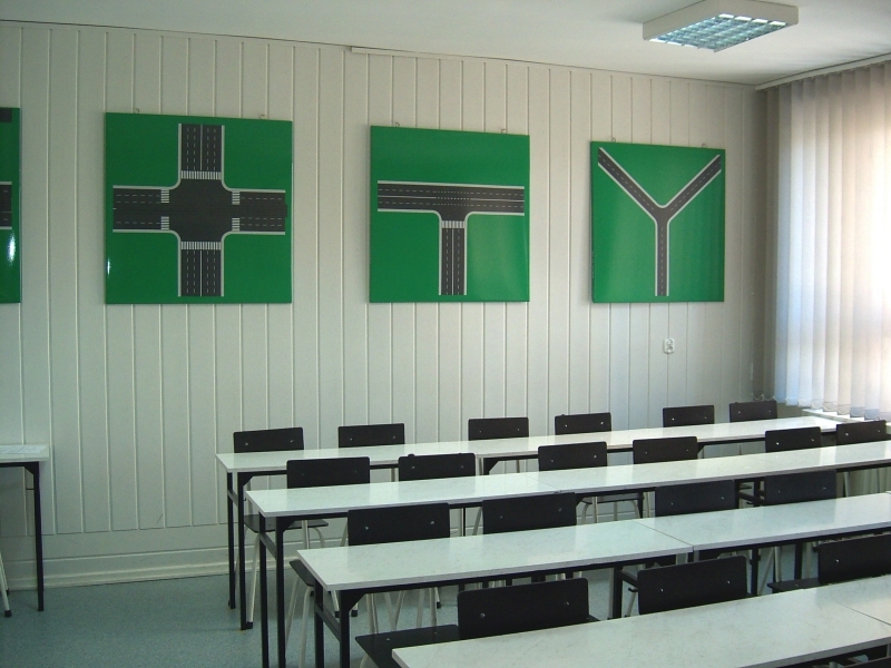 - makiety i tablice magnetyczne do symulacji różnych sytuacji drogowych,