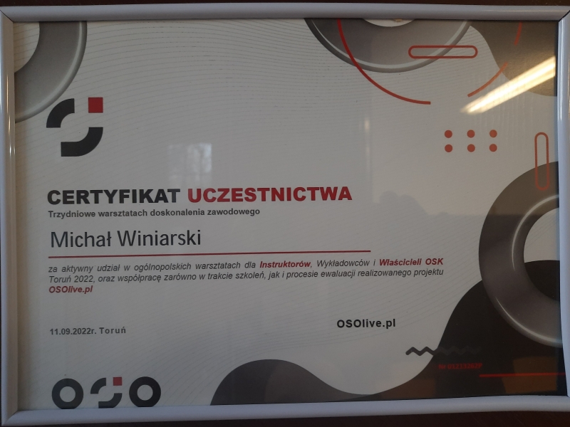Jeśli chodzi o Pana Michała to moim zdaniem jest to najlepszy instruktor jaki może się trafić. Dziękuję za przygotowanie. Zdane za pierwszym