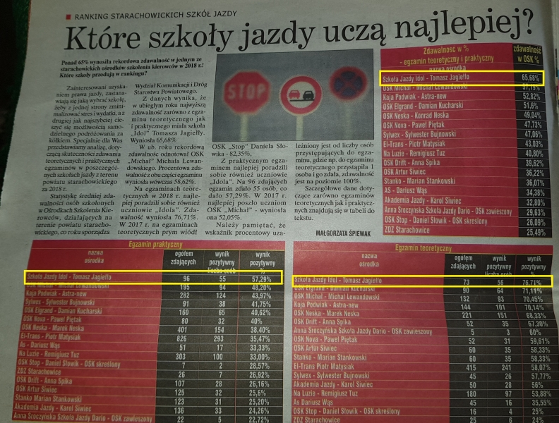 Polecam szkołę jazdy IDOL - Tomasz Jagiełło. Zdane za pierwszym Bardzo fajna atmosfera wykłady profesjonalne, Pan Tomek świetny instruktor rewelecyjne podejście do kursanta polecam każdemu kto chce szybko zdać� Najlepsza szkoła w mieście �