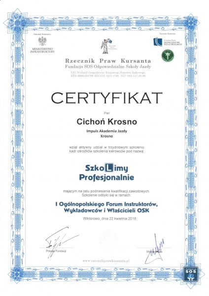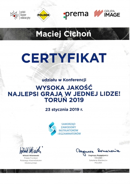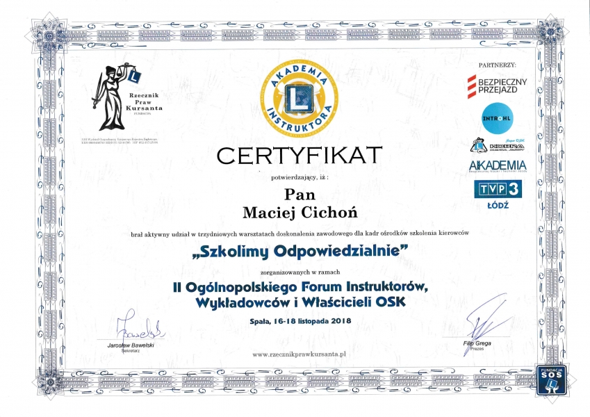 Twój Instruktor nigdy nie wstydzi się jak Cię wyszkolił, podpisał się pod tym i pójdzie z Tobą na egzamin z podniesioną głową.