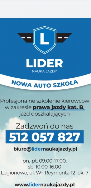 Zapraszamy do auto szkoły LIDER w Legionowie na kursy z zakresu prawa jazdy kat. B. Oferujemy również jazdy doszkalające przed egzaminem państwowym a także doszkalamy osoby posiadające uprawnienia, które nie czują się zbyt pewnie za kierownicą. Stawiamy na profesjonalne i rzetelne szkolenia, ale także nie zapominany o dobrej atmosferze. Mamy indywidualne podejście do każdego kursanta tak by jazda samochodem stała się przyjemnością. Serdecznie zapraszamy!