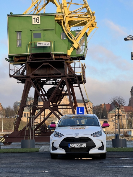 Jazdy prowadzone są samochodami Toyota Yaris IV – nowo zakupionymi w 2023 roku (takie same auta używane są podczas egzaminu państwowego w Szczecinie od 02.11.2023), dzięki czemu nasi kursanci mają odpowiednio dużo czasu na oswojenie się z pojazdami, na których będą zdawać egzamin. Ponadto dysponujemy klimatyzowaną salą wykładową przy siedzibie firmy oraz placem manewrowym obok toru gokartowego PZMOT przy ul. Wojska Polskiego.