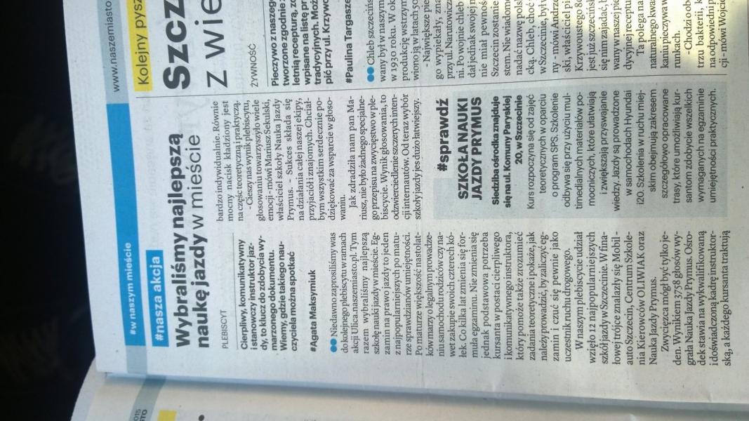 Szkoła godna polecenia. Najlepsza szkoła w Szczecinie. Wykłady u p. Mariusza bardzo ciekawe, udzielane bardzo dobre rady, które się przydają podczas praktyk. Instruktorzy z powołania. Jeździłam z p. Jackiem i z p. Tadeuszem najczęściej, są bardzo cierpliwi i bardzo spokojnie przekazują swoją wiedzę. Dziękuję za kurs jak i za praktyki. Szczęśliwa kursanta