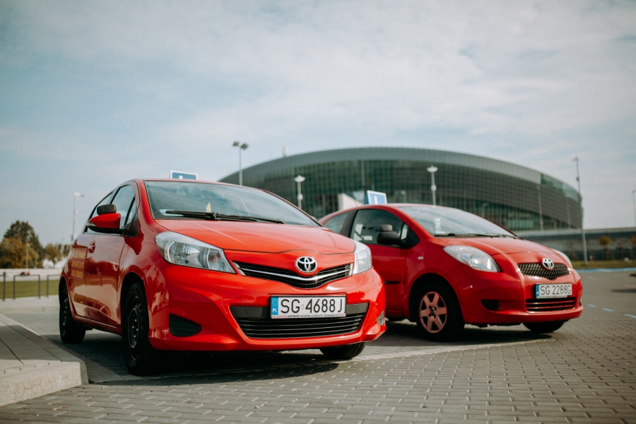 - samochody takie jak na egzaminie: Toyota Yaris (6M/T) rocznik 2013 oraz 2014, Toyota Yaris II