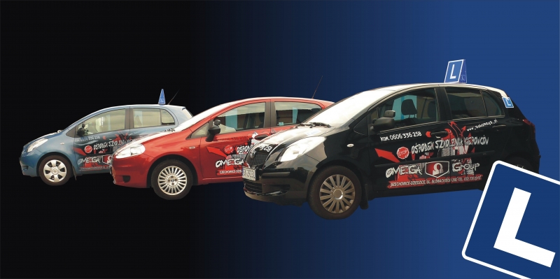 Szkolenia na prawo jazdy kat. „B” odbywają się w klimatyzowanych samochodach Toyota Yaris, Fiat Grande Punto w takich samych wersjach silnikowych jak pojazdy egzaminacyjne.