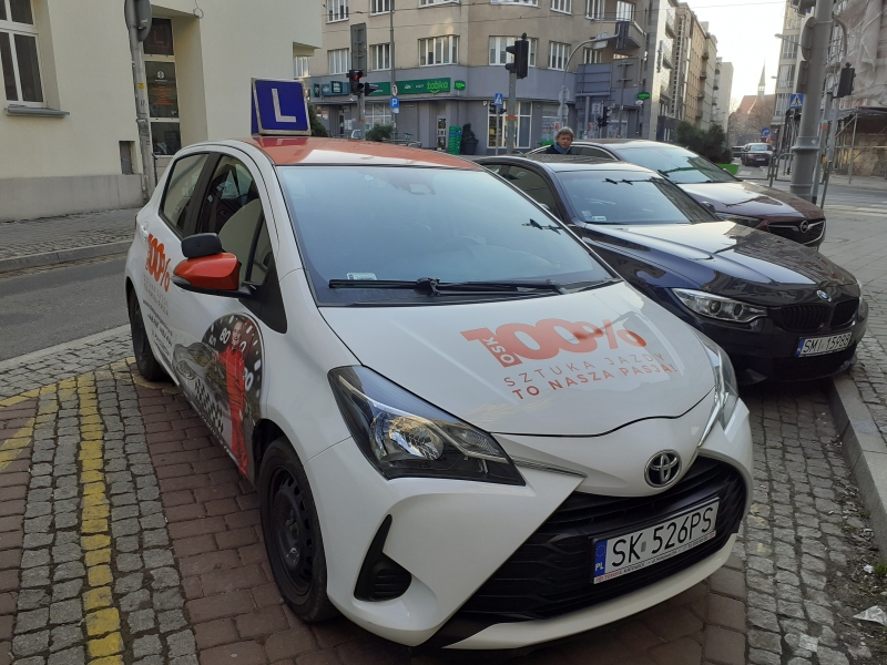 Wykłady odbywały się w weekendy. Wykłady przeprowadzone w dosyć ciekawy sposób. W moim kursie umawiałem jazdy jako jedna z ostatnich osób i na pierwsze jazdy czekałem około 2 tygodni. Później dostępność terminów była zadowalająca. Samochody w dość dobrym stanie (w jednym samochodzie pęknięta przednia szyba, w innym niedziałające tylne światło przeciwmgłowe). Jazdy odbywały się z różnymi instruktorami. Instruktorzy ogólnie byli w porządku, chociaż zwróciłem uwagę na kilka cech: często (prawie zawsze) zdarzały się w czasie moich jazdy przerwy na pogawędkę lub papierosa z innym instruktorem- zajmowało to 5-10 minut na 2 godziny jazd. Instruktorzy dawali mi rady i uwagi, jednak jak się potem okazało- większość z nich na niewystarczająco wymagającym poziomie, nawet pod koniec mojego kursu, kiedy powinno się szlifować umiejętności (odnosząc się do poziomu wymaganego na egzaminie praktycznym na prawo jazdy). Był jeden instruktor (pan Wojtek), wyraźnie dokładniejszy i bardziej wymagający od innych, z którym jazda przypominała tę egzaminacyjną. Podkreślam, że te cechy są różne dla różnych instruktorów. Gdy kupowałem jazdy dodatkowe prosiłem o jazdy właśnie z tym instruktorem- jedną udało się umówić. Jednak jak się później okazało, przyjechał do mnie inny instruktor. Nie było żadnego komentarza ze strony szkoły jazdy. Zależało mi na jazdach z tym instruktorem, więc nie była to miła niespodzianka. Państwowy egzamin praktyczny zdałem za drugim razem. Na pierwszym z nich zostałem uświadomiony, że jazda z prędkością 50 km/h z użyciem 3 biegu jest nieekologiczna i należy użyć 4 biegu. Być może ktoś w czasie kursu zwrócił mi na to uwagę, jednak nie na tyle, żebym sam zauważył u siebie ten błąd i pamiętał o nim. Dużym utrudnieniem w czasie zdawania był u mnie stres. Dlatego pisałem o niezbyt wymagających instruktorach. Uważam, że gdyby byli oni bardziej wymagający, to byłoby mi łatwiej na egzaminie.