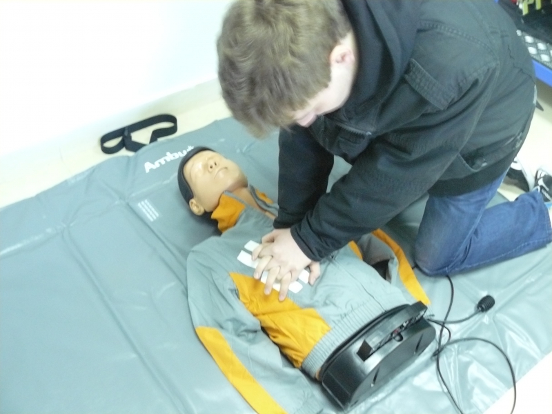 Zajęcia z pierwszej pomocy prowadzone są przez doświadczonego ratownika medycznego w zakres szkolenia z pierwszej pomocyw chodzą ćwiczenia przy użyciu fantoma firmy AMBU.
