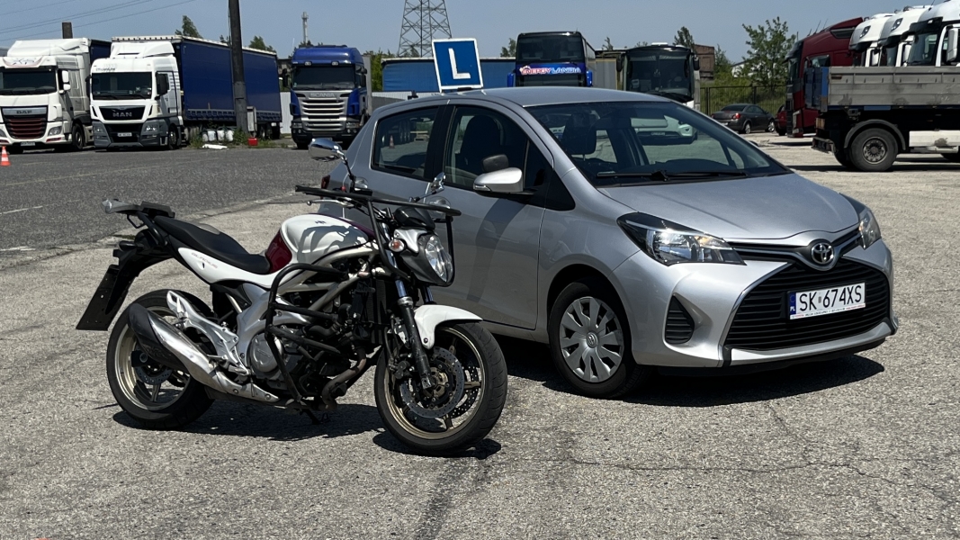 -pojazdy takie same jak na egzaminie państwowym - Toyota Yaris III 6-biegowa i Suzuki Gladius SFV650