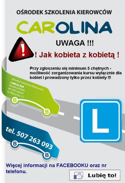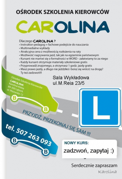 Nauka Jazdy CAROLINA zaprasza na kursy prawa jazdy kat.B :)