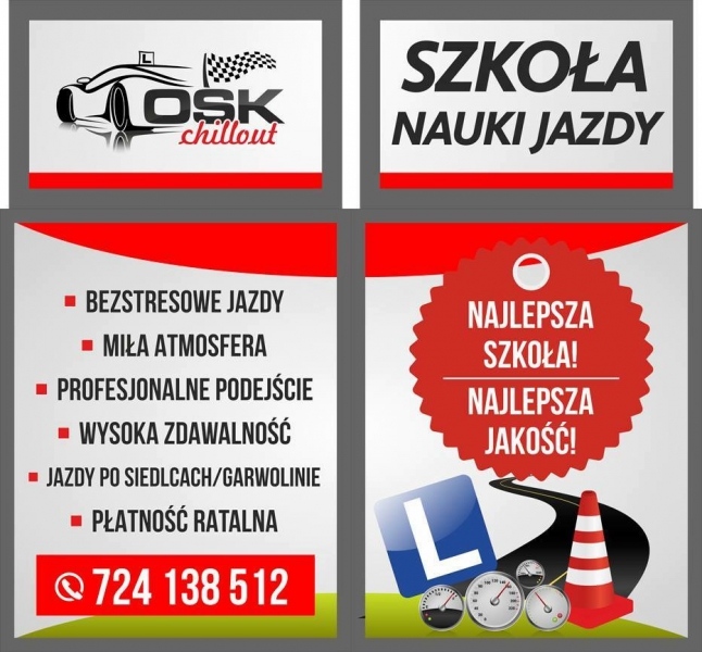 Chcielibyśmy poinformować wszystkich Państwa, że OSK CHILLOUT został zamknięty A instruktor Pan Sebastian Jajszczak przeniósł się i pracuje teraz w OSK MAZOWSZE.