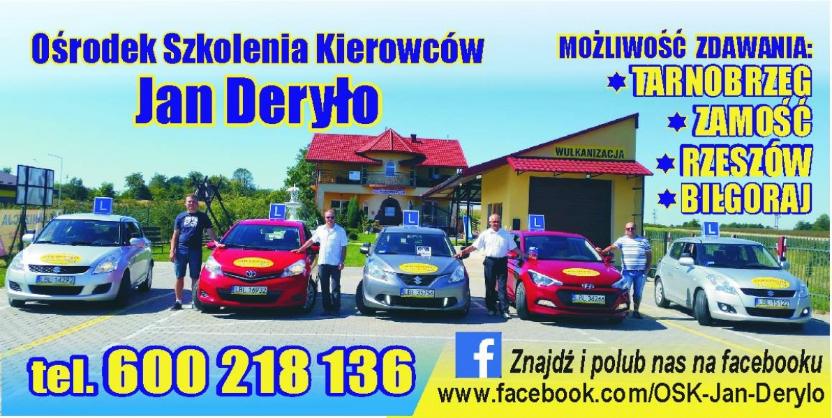 Ośrodek Szkolenia Kierowców "Jan Deryło", jako firma działa od 1997 roku, i jest jedna z najstarszych w powiecie Biłgorajskim. Założycielem a jednocześnie właścicielem jest Pan Jan Deryło. Firma zajmuje się profesjonalnym szkoleniem kandydatów na kierowców kat "B", a także doszkalaniem osób przed egzaminem. Od początku działalności firma utrzymuje się w czołowym miejscu pod względem zdawalności za pierwszym podejściem.