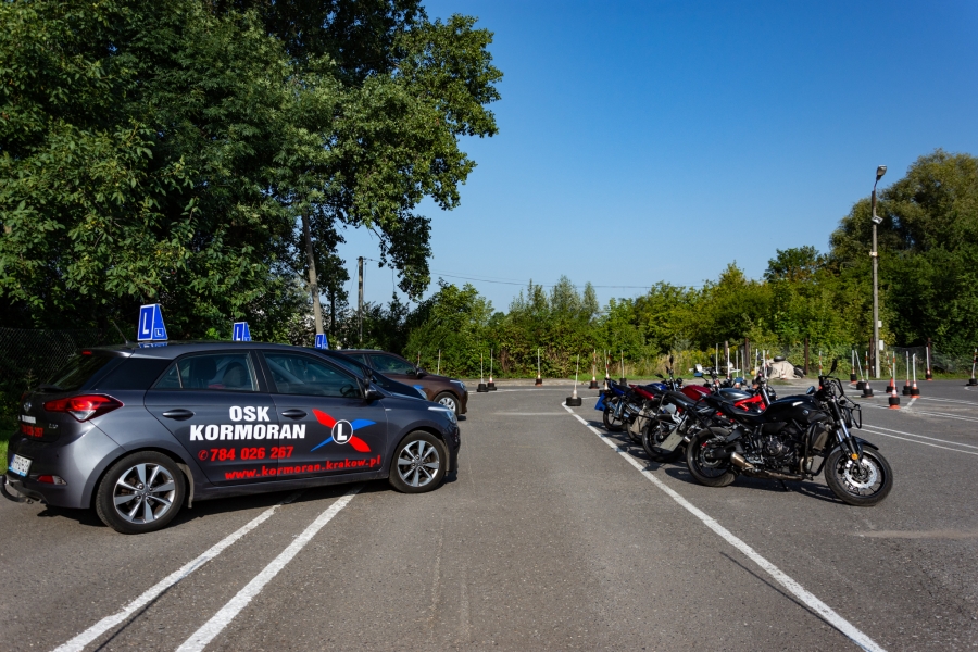 - jazdy szkoleniowe na wszystkie kategoria odbywają się na pojazdach takich samych jak na egzaminie w Krakowie