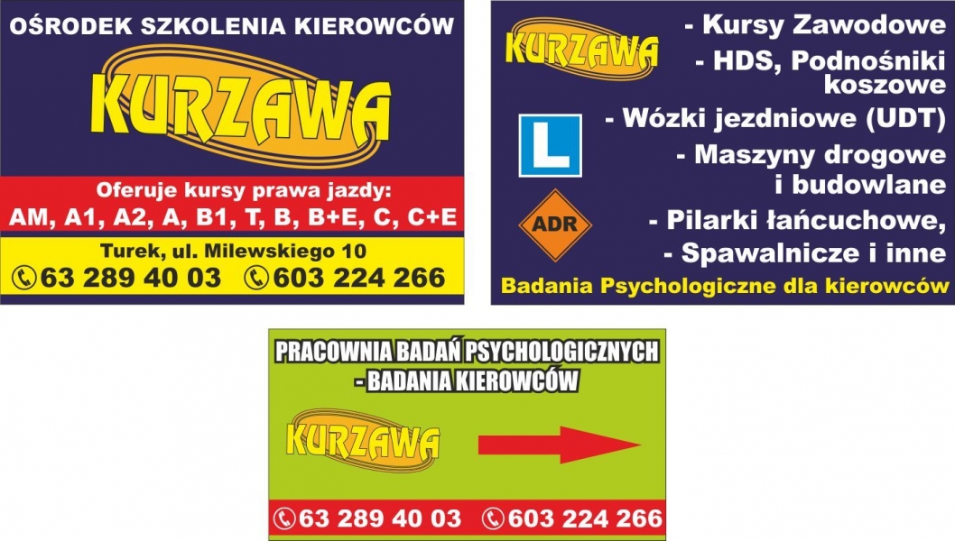 Zobacz pełny opis szkołyTurek ul. Milewskiego 10, tel. 697 463 005, 603 224 266 prowadzi kursy: