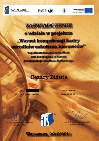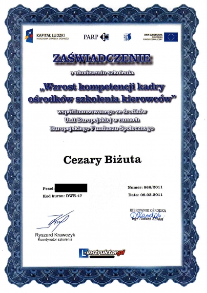 n s t r u k t o r ó w K s z t a ł c e n i a K i e r o w c ó w