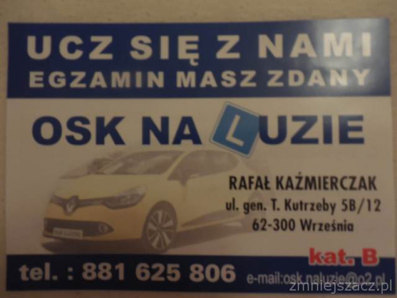 "OSK NA LUZIE" - najlepsza szkoła jazdy we Wrześni. Pan Rafał super człowiek, do rany przyłóż. Można o wszystkim porozmawiać jak i zapytać o technikę jazdy czy inne sprawy z tym związane. Atmosfera na pełnym luzie, nie stresująca ! Instruktor tłumaczy wszytsko w spokoju i rozwagą. Jezeli komuś nie idzie to zawsze służy pomocną ręką. Jak najbardziej polecam tą szkołe. Jak chcecie zdać za pierwszym to już wiecie gdzie iść !