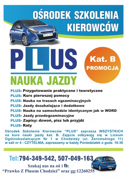 *PLUS -szkolenie teoretyczne i praktyczne kat. B