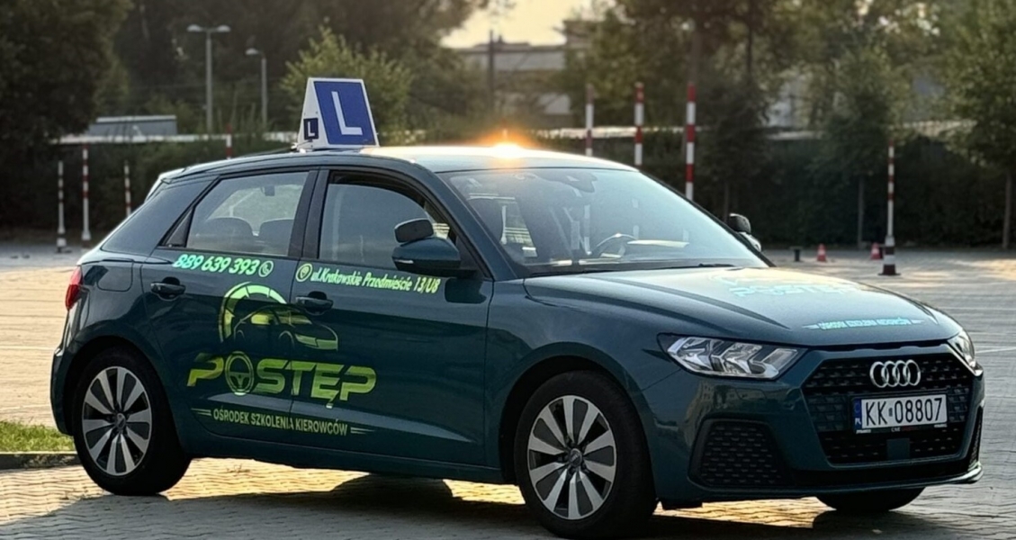 - Audi A1 Sportback (pojazd egzaminacyjny, podstawiany przez nas na Twój egzamin praktyczny; z asystentem ruszania pod górę i czujnikami parkowania, z których możesz korzystać w trakcie egzaminu państwowego) [MANUALNA skrzynia biegów]