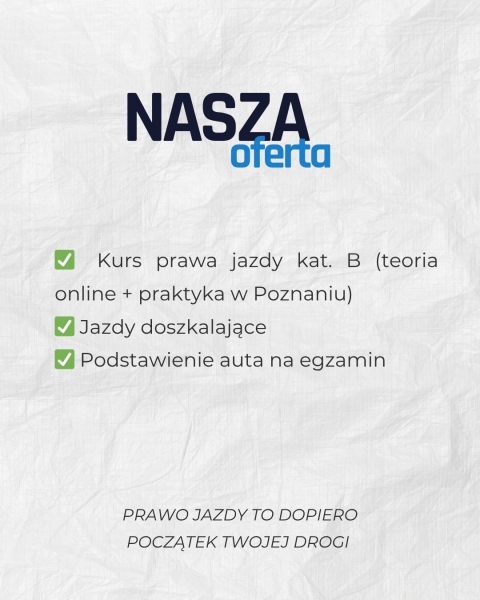 - dostosowanie harmonogramu jazd do Twojego grafiku/planu zajęć tak żeby skończyć kurs w 30dni,