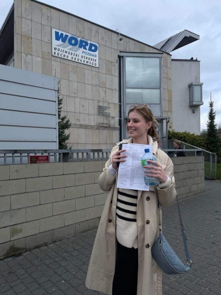 Jesteśmy szkołą, która w roku 2024 miała jedną z najwyższych zdawalności w Word Poznań JAKO JEDYNA SZKOŁA JAZDY uczęszczamy na egzaminy państwowe WORD POZNAŃ z naszymi kursantami. (EGZAMIN PRAKTYCZNY)