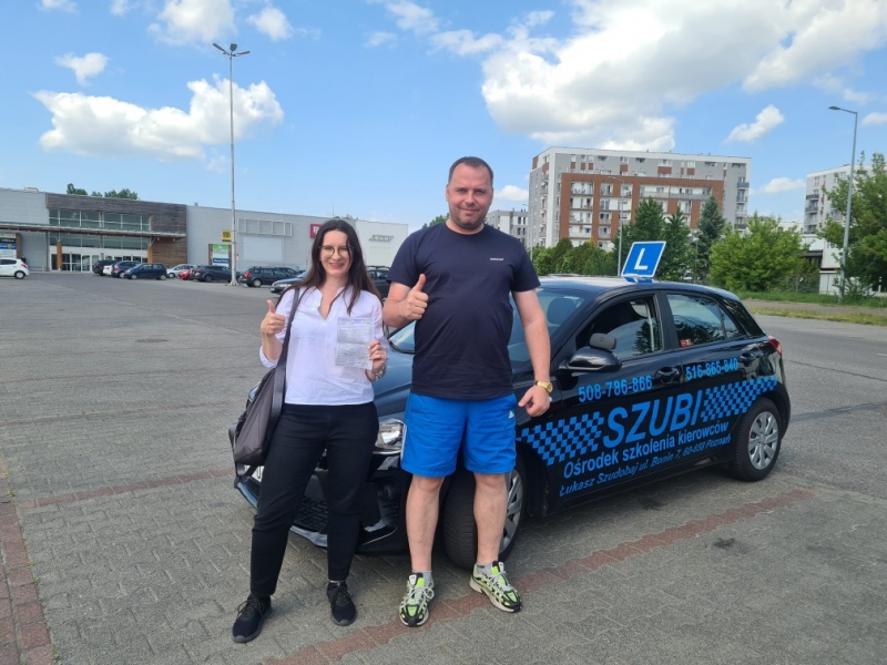 Z czystym sumieniem mogę polecić OSK SZUBI. Po pierwsze i najważniejsze, każdy tam chce nauczyć kursanta jazdy, tak, aby przyszły kierowca radził sobie będąc samemu na drodze, a nie przygotować tylko do egzaminu. Jazdy odbywają się z różnymi instruktorami, dzięki czemu otrzymuje się różne perspektywy jazdy, i choć na początku może to być trudne, szczególnie przy stresie związanym z jazdą samochodem, to finalnie jest to naprawdę dobre doświadczenie. To samo dotyczy różnych samochodów, którymi się jeździ, mimo, że każdy to ten sam model (także ten sam, którym się jeździ na egzaminie państwowym), to jednak każdy samochód troszkę się różni pracą sprzęgła, dzięki czemu jest się przygotowanym na różnie pracujące samochody, a to się przydaje na egzaminie i w późniejszej jeździe. Naczęściej jeździłam z Moniką i Arturem, więc ich najbardziej mogę polecić i podziękować nie tylko za przygotowanie do egzaminu, ale przede wszystkim za solidną naukę jazdy, bo moje początki zdecydowanie nie należały do najprostszych. Niemniej przerobiłam jazdy z każdym z instruktorów, więc na kogokolwiek się trafi, czy to Monikę, Artura, Panią Iwonkę czy szefa Łukasza, z każdym będzie się w dobrych rękach. Nie ma też problemu z dokupywaniem jazd doszkalających, zawsze znajdzie się czas na to, żeby się doszkolić i przygotować lepiej do egzaminu, także pomiędzy niezdanym egzaminem, a następnym terminem. Nie ma tu opcji, że zabraknie terminów, a to mówi samo za siebie o podejściu szkoły do kursanta. U mnie egzamin zdany za drugim razem z powodu stresu i tym spowodowanych głupich błędów, jednak na oba egzaminy szłam z poczuciem, że potrafię jeździć, dzięki czemu teraz nie czuję się zblokowana przed "zapakowaniem się" do samochodu i ruszeniem w drogę.