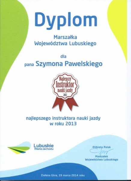 19 marca 2014 otrzymaliśmy prestiżową nagrodę SZKOŁA OK. Zajęliśmy 2 miejsce w szkoleniu kandydatów na kierowców i tym samym znaleźliśmy się w czołówce OSK na terenie obsługiwanym przez zielonogórski WORD