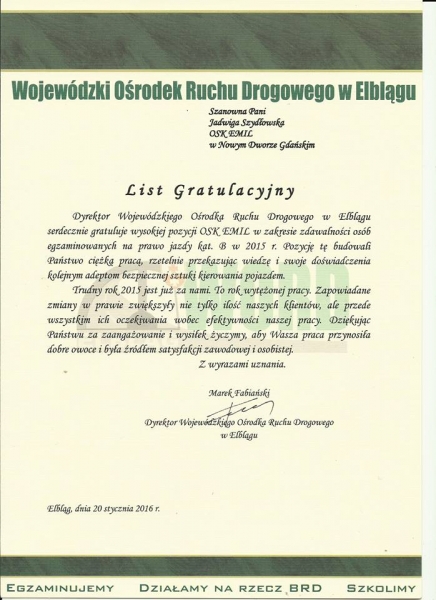 Zapraszamy do odwiedzenia naszej strony internetowej www.emil.ndworgd.pl gdzie tłumaczymy jak rozpocząć kurs oraz naszego profilu na portalu Facebook.pl (https://www.facebook.com/szkolajazdyoskemil/) , gdzie odnaleźć można opinie na temat naszej szkoły, jednocześnie zachęcamy do zostawiania swoich opinii po przebytym szkoleniu.