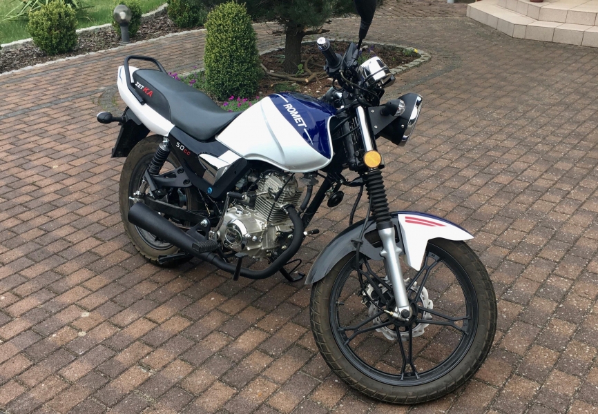 >Kurs prawa jazdy kategorii Am jest prowadzony na motocyklach Romet ZK50 oraz Romet WS50<