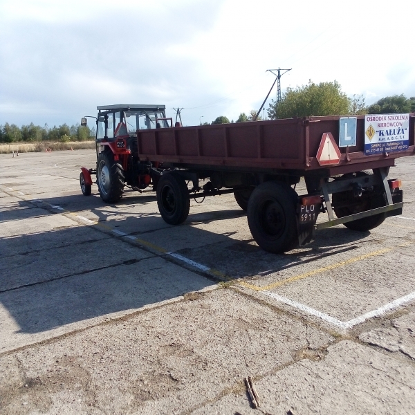 >Kurs kategorii T jest prowadzony na Ferguson 3512 wraz przyczepą<