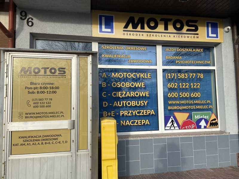 Zdobędziecie u nas wiedzę teoretyczną, która będzie przekazywana w doskonale wyposażonej sali, gdzie wykładowcy wprowadzą Państwa w świat skrzyżowań. Umiejętności praktyczne zdobędziecie jeżdżąc samochodami identycznymi z tymi, na których odbywają się egzaminy. Dysponujemy profesjonalnym placem manewrowym, gdzie stawiać będziecie „pierwsze kroki” w sztuce prowadzenia pojazdu samochodowego. Oferujemy kompleksowe kursy prawa jazdy, a także jazdy doszkalające w każdej z powyższych kategorii. Zajęcia teoretyczne i praktyczne zgodnie z wymogami prawnymi, materiały szkoleniowe, zestawy testów i szkolenia medyczne. A to, co nas wyróżnia od 30 lat działalności to profesjonalizm, rzetelność, najwyższe standardy i skuteczność. W celu uzyskania większej ilości informacji zapraszamy do biura OSK MOTOS.