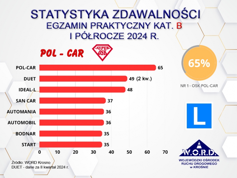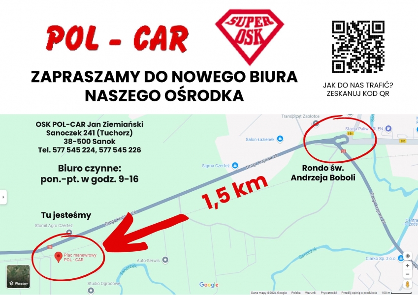 Prowadzimy szkolenia na obszarze powiatów: sanockiego, leskiego, bieszczadzkiego i krośnieńskiego. Dbałość o wysoką jakość prowadzonych szkoleń, wysoką zdawalność i wysoki poziom obsługi kursantów prowadzi do sukcesywnego rozwoju firmy. Ponadto posiadamy akredytację Kuratora Oświaty.Zapraszamy do OSK POL-CAR "Super OSK"!
