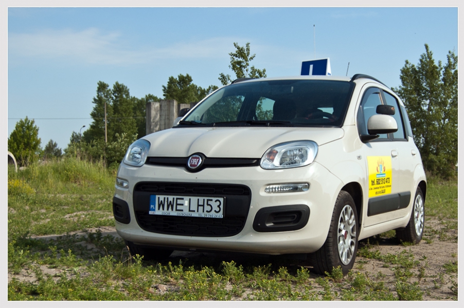 Egzamin praktyczny zdaje się pojazdem OŚRODKA SZKOLENIA KIEROWCÓW PUCHTA, którym się uczy jeździć.