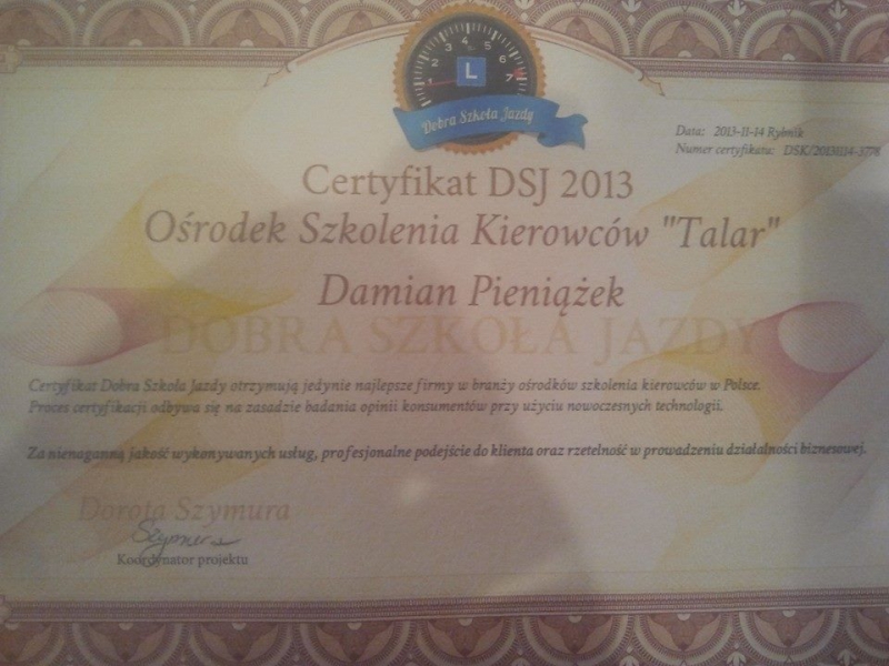 Bardzo dobra szkoła, oczywiście wszystkim polecam. Instruktorzy są bardzo mili zawsze wspierają swoich kursantów i zawsze można na nich liczyc, dzięki nim każdy z egzaminów do których należy podejsć przebiega doskonale, są bardzo wyrozumiali i cierpliwi , zawsze uśmiechnici i pogodni co dodaje komfortu jazdy, do naszych niepowodzeń podczas nauki jazdy podchodzą zawsze z żartem przez co kursanci nie czują nerwów i stresu co pózniej ma swoje odbicie na egzaminie, bo taka osoba mniej sie wtedy boi czego jestem przykładem zdałam za 2 razem. Toważysza swoim kursantom na każdym egzaminie i wrazie niepowodzeń zasze potrafia pocieszyć. Wykłady przeprowadzane są w bardzo profesionalny sposób i można na nich wiele sie nauczyć i co pózniej sprzydaje sie na egzaminie teoretycznym, tylko oczywiscie trzeba na nie chodzić i słuchać :) Dziekuje bardzo instruktorom Kamilowi i Damianowi, bo gdyby nie oni to nie poszłoby mi tak łatwo i bezstresowo co egzaminatorzy widza i dzieki temu bez zastanowienia wystwaiają wynik pozytywny bo widza ze sobie radzimy. Pozdrowinia dla nich i jeszcze raz dziekuję ! "Talar" To Naprawde Najlepsza Szkoła Jazdy w Nysie ! :) Kasia :*