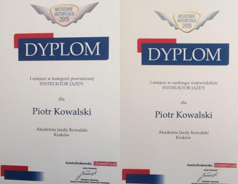 Miło nam poinformować ze jesteśmy już po Gali Mistrzów Motoryzacji 2019, oraz po Gali Mistrzów Motoryzacji 2020 . Plebiscyt zorganizowany przez redakcje ,,Dziennika Polskiego, oraz „Gazety Krakowskiej” Dzięki Wam drodzy klienci oraz przyjaciele i Waszym głosom wygraliśmy w dwóch kategoriach I miejsce w kategorii powiatowej : Instruktor Jazdy 2019, oraz 2020 I miejsce w kategorii wojewódzkiej : Instruktor Jazdy 2019,2020 , II miejsce w kategorii : Szkoła jazdy Roku w Krakowie 2019, oraz 2020 Dziękujemy!!!!!!
