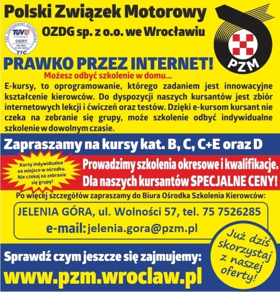 PZMot w Jelenia Górze organizuje szkolenia na prawo jazdy kategorii: B, C, C+E, D.