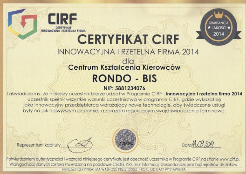 Profesjonalizm to słowo które pierwsze przychodzi mi na myśl słysząc nazwę Rondobis :) Wysoki poziom ,przemiła obsługa i wykwalifikowana kadra dydaktyczna :) Zajęcia bardzo ciekawe i opierające się na dużej wiedzy i doświadczeniu wykładowców ! I pomoc ? I klasa ! Nigdy nie miałam takich zajęć i bardzo się cieszę ,że mogłam je odbyć w tej szkole :) Nawet dostałam certyfikat który może mi się przydać :) Jako instruktora sympatyczne Panie z biura z uśmiechem na twarzy poleciły mi P.Kłosiewskiego i wiem dlaczego ,Pan Paweł jest suuuper ,serdecznie polecam ,nie wymieniłabym na lepszy model :) Te lekcje pozostaną ze mną już na zawsze .Skutecznie nauczył mnie wszystkiego i dzięki niemu zdałam za pierwszym razem ! Szkoda ,że to już koniec tej przygody . Serdecznie wszystkich pozdrawiam i z czystym sumieniem będę Was polecać !