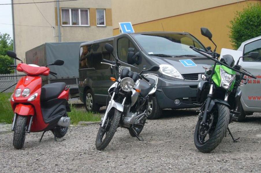 - kat. AM, A1, A2, A - posiadamy 4 własne motocykle na wszystkie kategorie - takie same jak na egzaminie w WORD Tarnobrzeg