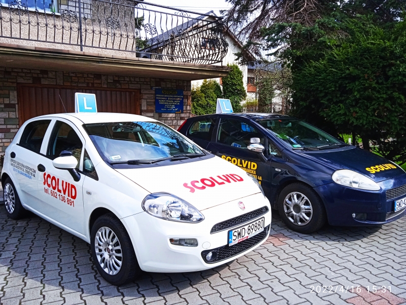 Ośrodek Szkolenia Kierowców SCOLVID powstał w 1989 roku i od ponad 35 lat zajmuje się szkoleniem kierowców na kategorię B .W chwili obecnej wszystkie kursy są kursami indywidualnymi i każdy kursant jest traktowany priorytetowo. Wykłady z teorii prowadzimy przy pomocy platformy internetowej pod nadzorem instruktorów co bardzo ułatwia naukę i oszczędza czas natomiast jazdy odbywają się na samochodach które udostępniamy na pierwszy egzamin państwowy w cenie kursu . W chwili obecnej dysponujemy SKODĄ FABIA taką jak w ośrodku egzaminowania i Fiatem PUNTO . Kursant decyduje na jakim samochodzie chce jeździć i zdawać egzamin państwowy.