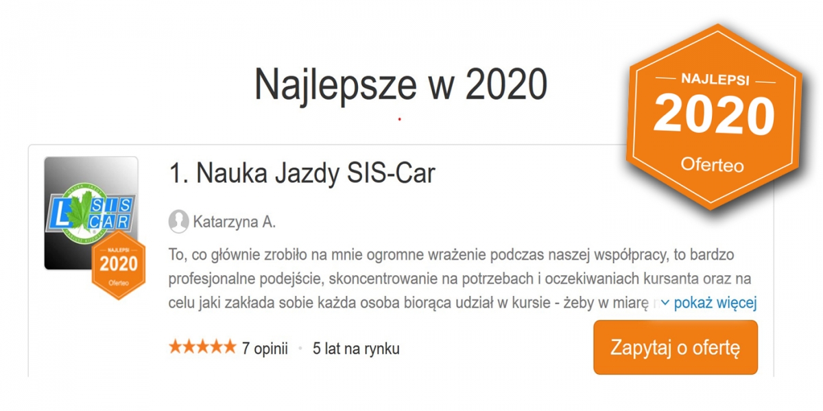 Bardzo polecam ten ośrodek szkoleniowy. Moje jazdy prowadził egzaminator zatrudniony w sis-car. Kilka godzin jazd zmieniło moje podejście do prowadzenia pojazdu ale i do samego egzaminu na który poszłam z uśmiechem i zdałam! To nie tylko jazda byle odbębnić godziny, wszystko świetnie wytłumaczone i pokazane :)