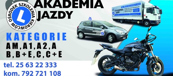 Szkolimy w kategoriach: A, A1, B, B1, C, D, B+E, C+E, T, A2, AM, B po B1, A po A1, A po A2, C, C+E, A+B, A2+B, A2 po A1