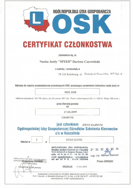 SPEED Nauka Jazdy Dariusz Czerwiński