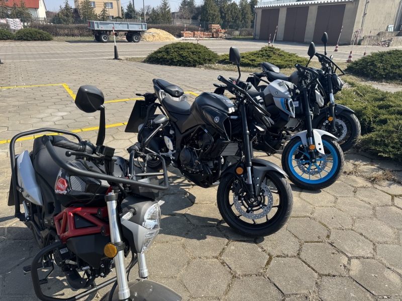 • Nowoczesne pojazdy identyczne z tymi, które są używane na egzaminach (Kia Rio IV, Yamaha MT).