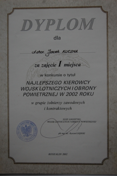 Kierownikiem i założycielem szkoły jazdy JACEK jest Jacek Kuczma:- wielokrotny zwycięzca zawodów rangi ogólnopolskiej w Wojsku Polskim na "Najlepszego kierowcę Sił Powietrznych w Polsce" - instruktor nauki jazdy z 25-letnim doświadczeniem.Szkoła jazdy JACEK to:- gwarancja wysokiego poziomu szkolenia,- indywidualne podejście do każdego kursanta,- bezstresowe i w przystępny sposób przygotowanie do egzaminu w ZORD,- nauka prawidłowej i bezpiecznej techniki jazdy.