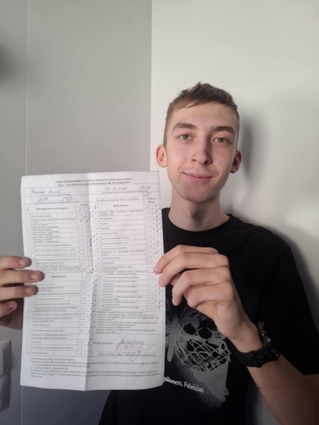Polecam szkołę jazdy i instruktora Łukasza pełny profesjonalizm, oba egzaminy państwowe zdane za pierwszym podejściem. Wykłady bardzo ciekawe, plusem też są darmowe materiały do nauki tj. książka i płyta z testami.