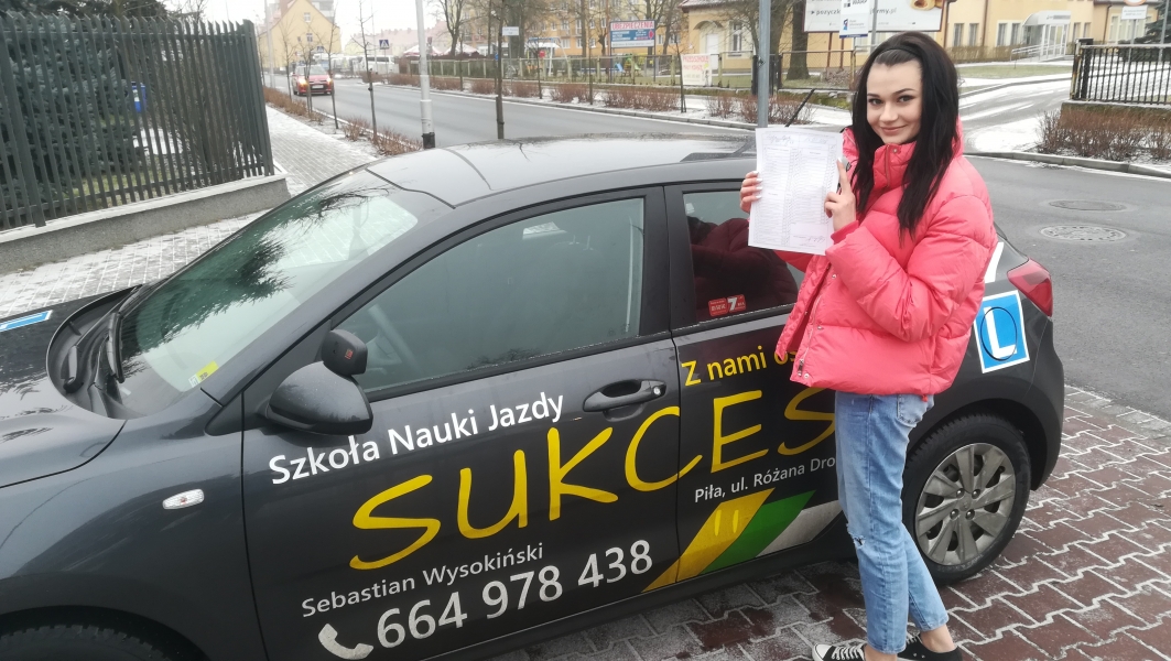 Z całą pewnością polecam szkołę jazdy Sukces, instruktor wykazujący się ogromną cierpliwością do kursanta, godziny jazd dostosowane do moich możliwości, nawet przy dojeżdżaniu spoza Piły. Atmosfera podczas jazd bezstresowa i komfortowa. Mimo drobnych kryzysów, egzamin praktyczny zdany za drugim razem. Nie żałuję wybrania właśnie tej szkoły, czuję się przygotowana nie tylko do zdania egzaminu, ale także późniejszej jazdy.