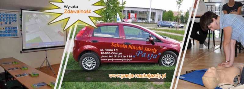 O SZKOLESzanowni Państwo, Bardzo miło nam poinformować, iż nasza Szkoła w sierpniu 2016 roku zajęła 2 miejsce w powiecie Olsztyńskim w plebiscycie Gazety Olsztyńskiej: "ELKA na 5 z plusem". Z dumą dodamy, że dzięki Państwa uznaniu to nie pierwszy nasz taki sukces, bowiem już w roku 2012 nasza Szkoła wygrała plebiscyt gazety Nasz Olsztyniak: "ELKA nad Elkami" a w roku 2013 zajęliśmy 2 miejsce w plebiscycie Gazety Olsztyńskiej "ELKA na 5 z plusem". Szczegóły dotyczące wszystkich sukcesów "Pasji" znajdą Państwo na naszej stronie www.pasja-naukajazdy.pl w zakładce NAGRODY.Dziękujemy !!Nazywam się Arkadiusz Przybyszewski. Jestem instruktorem-wykładowcą z wieloletnim doświadczeniem.Z wykształcenia jestem nauczycielem, co bez wątpienia pomagało mi w nauczaniu przyszłych kierowców. Zamiłowanie do motoryzacji, pedagogiczne wykształcenie, wiedza, duże doświadczenie w prowadzeniu zajęć teoretycznych i praktycznych oraz satysfakcja z umiejętnego przekazywania wiedzy przyszłym kierowcom spowodowały, iż praca jako instruktor nauki jazdy stała się moją pasją. Stąd też nazwa mojej własnej szkoły, do której serdecznie zapraszam. Instruktorki i Instruktorzy pracujący w „Pasji” to osoby, z którymi współpracowałem w poprzednich latach, dlatego wiem, że ich wiedza, wieloletnie doświadczenie, profesjonalizm i zaangażowanie są na tyle duże by sprostać Państwa oczekiwaniom. Dla nas najważniejsze jest zadowolenie i satysfakcja z wyboru mojej szkoły, dlatego gwarantuję, iż prowadzone przez nas szkolenia są najwyższej jakości bo u nas każdy kursant jest VIPem.Wyróżnia nas także to, iż prowadzimy tylko jedną kategorię prawa jazdy - kategorię "B", w której się specjalizujemy.Dla nas zajęcia teoretyczne są równie bardzo ważne jak zajęcia praktyczne, dlatego przeprowadzamy je w sposób od wielu lat preferowany przez naszych kursantów czyli w formie ćwiczeń i wykładów głównie "MÓWIONYCH" z Wykładowcą i Ratownikiem Medycznym w ustawowym wymiarze 30 godzin lekcyjnych (30 x 45 min.) Kładziemy tu nacisk na przekaz SŁOWNY,nie ograniczając się tym samym tylko do "puszczania" filmów którymi to jedynie ten przekaz uzupełniamy.(Kursanci w swoich opiniach dodanych nam poniżej to potwierdzają za co bardzo dziękujemy bo to świadczy o docenieniu naszej pracy i o potrzebie prowadzenia wykładów w taki właśnie sposób a nie inny.).Dobry PODRĘCZNIK i aktualne TESTY potrzebne do nauki udostępniamy każdemu BEZPŁATNIE na WŁASNOŚĆ.Jeśli chodzi o szkolenie praktyczne (jazda samochodem) kursantka czy też kursant odbywa w naszej Szkole od początku do końca z JEDNYM i tym samym,wybranym przez siebie instruktorem bądź instruktorką a dzięki temu NIE jeździ codziennie z innym,chociaż nie jest to obligatoryjne.Szkolenie praktyczne trwa u nas zgodnie z ustawą 30 godzin zegarowych.Dla Państwa komfortu i efektywności szkoleń dysponujemy profesjonalnie wyposażoną salą do przeprowadzania zajęć teoretycznych, a do zajęć praktycznych zarówno Fiatami Punto jak i samochodami marki Kia Rio takimi na jakich przeprowadzane są egzaminy państwowe.WSZYSTKIE nasze samochody szkoleniowe zostały zakupione jako nowe i są na bieżąco starannie przeglądane i serwisowane TYLKO w AUTORYZOWANYCH Stacjach Obsługi FIATA oraz KIA. Dodatkowym atutem jest miła i fachowa obsługa w biurze szkoły, gdzie będą mogli Państwo uzyskać wszelkie szczegółowe informacje, bądź zapisać się na kurs. Szkoły które w swojej ofercie mają kilka kategorii prawa jazdy takich jak kategoria A,B,C,C+E,D itd.naturalnie otrzymują więcej opinii od swoich kursantów ze względu na ich liczebność niż Szkoła taka jak nasza która prowadzi TYLKO JEDNĄ kategorię prawa jazdy czyli kategorię "B".Mimo to jesteśmy w ŚCISŁEJ CZOŁÓWCE rankingu a co za tym idzie jesteśmy wyjątkowo dumni że tak duża liczba opinii wystawionych nam dotyczy TYLKO JEDNEJ kategorii prawa jazdy którą się zajmujemy czyli kategorii "B" będącej naszą domeną,dlatego zachęcamy Państwa serdecznie do wzięcia pod uwagę tego faktu przy wyborze Szkoły gdzie każdy kursant dodając opinie swojej szkole w tym rankingu zaznacza jakiej kategorii prawa jazdy kurs przechodził co przekłada sìę na ilość opinii dla poszczególnych kategorii.Warto pamiętać iż kurs na prawo jazdy każdy z nas robi raz w życiu,dlatego jeżeli chcą Państwo solidnie i rzetelnie być przygotowani zarówno od strony teoretycznej jak i praktycznej,zapraszamy do naszej Szkoły!Prosimy sprawdzić na naszej stronie internetowej www.pasja-naukajazdy.pl aktualne promocje w zakładce CENNIK.Pozdrawiam.Arkadiusz Przybyszewski